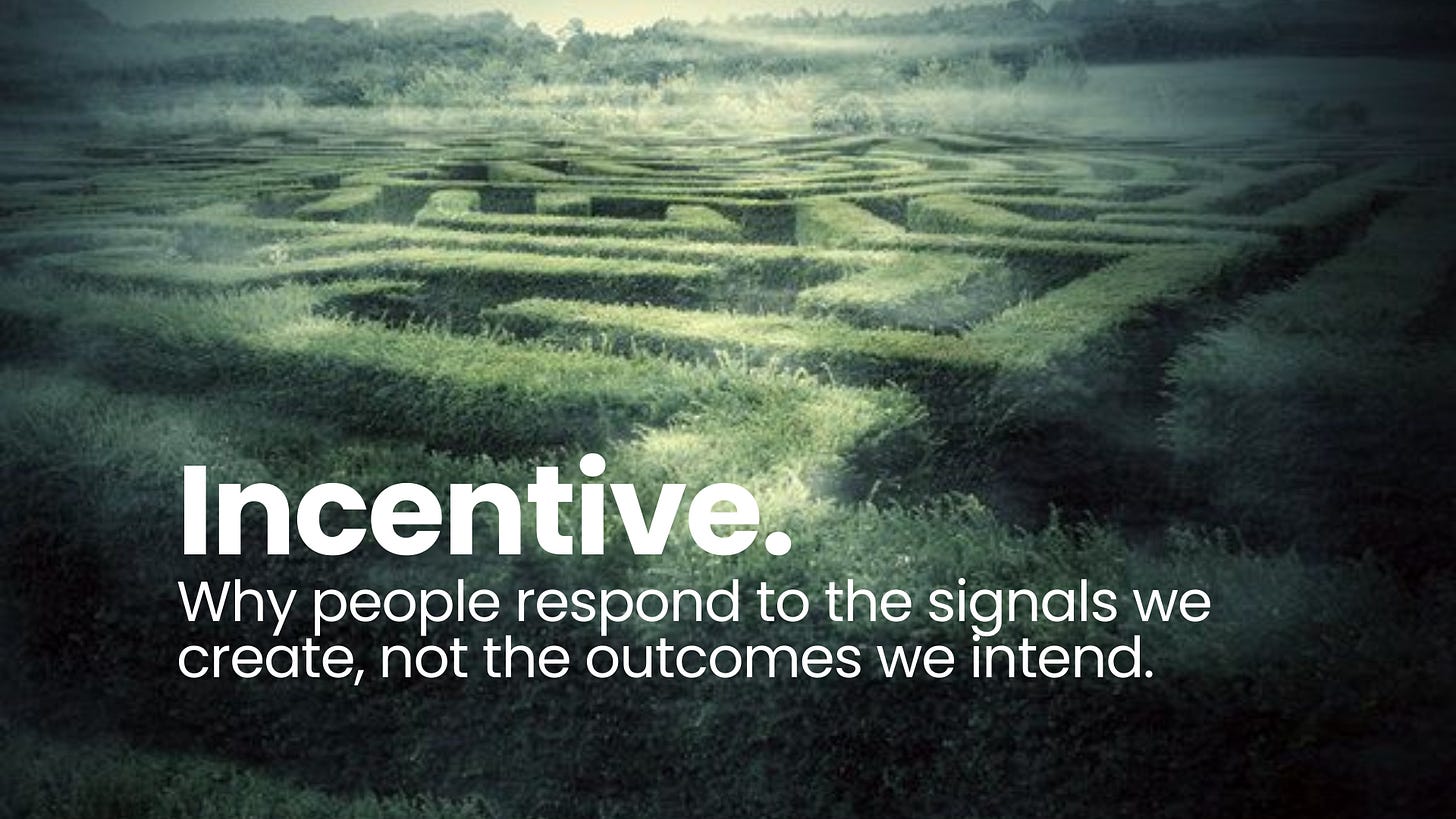 The question is not whether organisations can design incentives — they already do, constantly, whether they intend to or not — but whether they can learn to see the ones they didn’t mean to create.